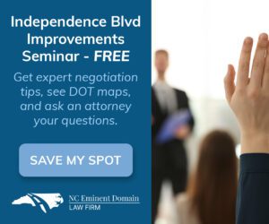 The primary Independence Boulevard Improvements will transform the road from its current 4- to 6-lane width to include extra lanes, express lanes, and faster-flowing interchanges. While those improvements are the focus, the secondary effects of new roads, interchanges, and intersections threaten many property owners outside the primary project path.